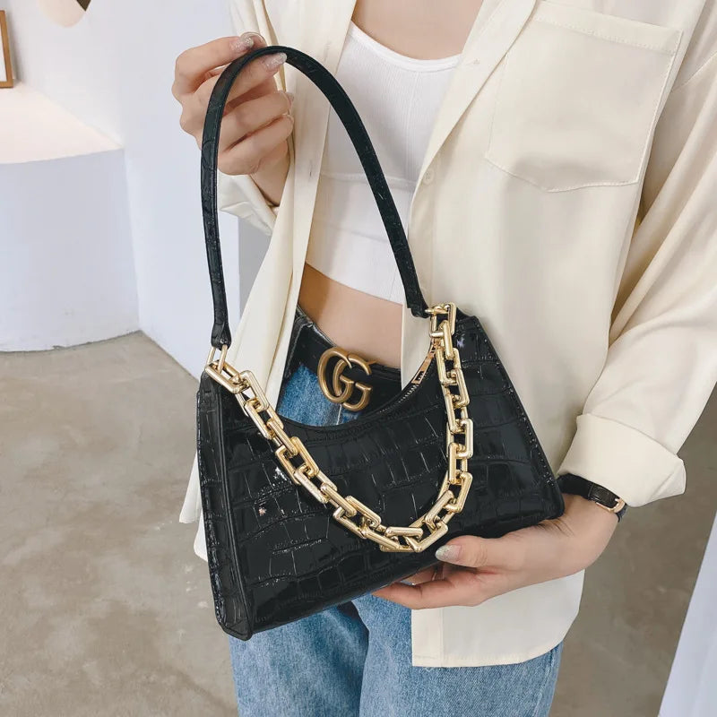 Elevate your style with this crocodile pattern one shoulder bag made of PU leather, perfect for a versatile and advanced texture look.