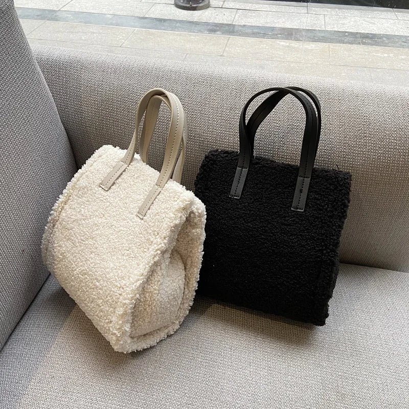 Lamb Hair Tote Bag Solid Color Shoulder Messenger Bag