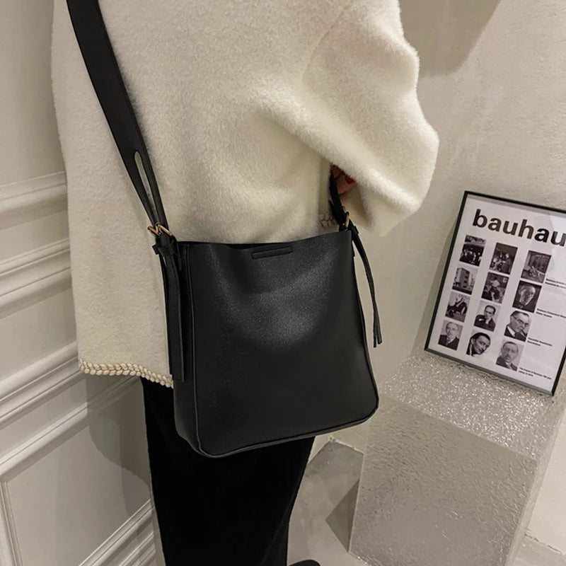 This stylish bucket bag is perfect for travel, dinner, or office use. It features a spacious capacity for all your essentials.