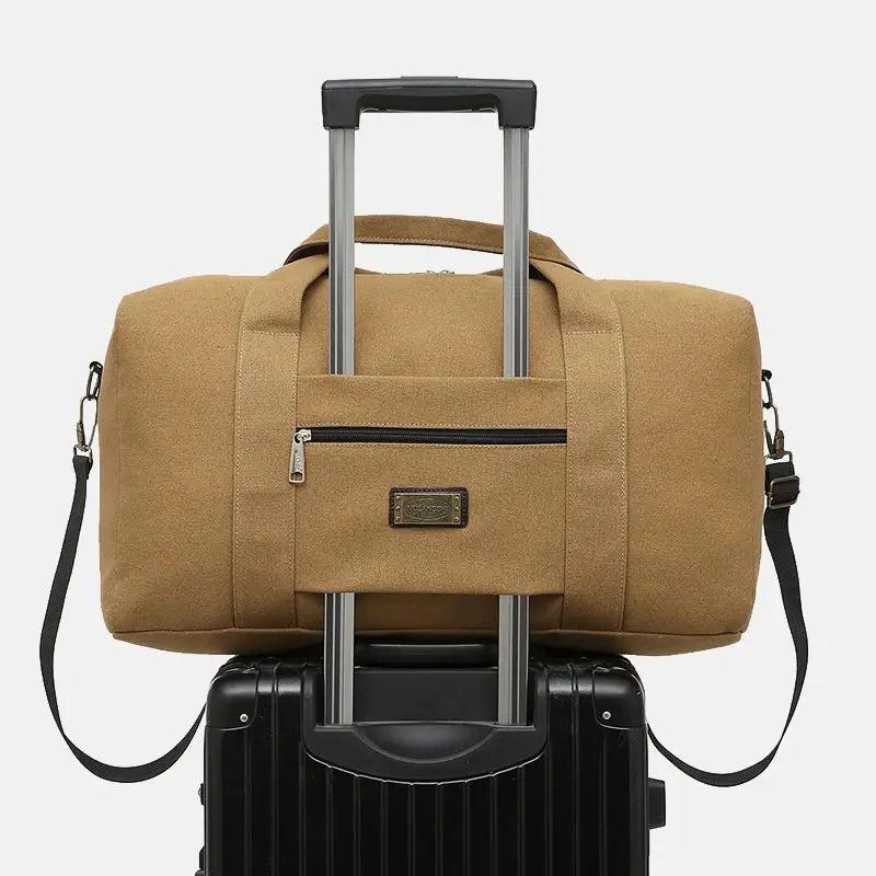 This multifunctional canvas travel bag is perfect for short trips with its large capacity and cut-proof design. It can be used as a handbag or shoulder bag, making it versatile for different travel needs.