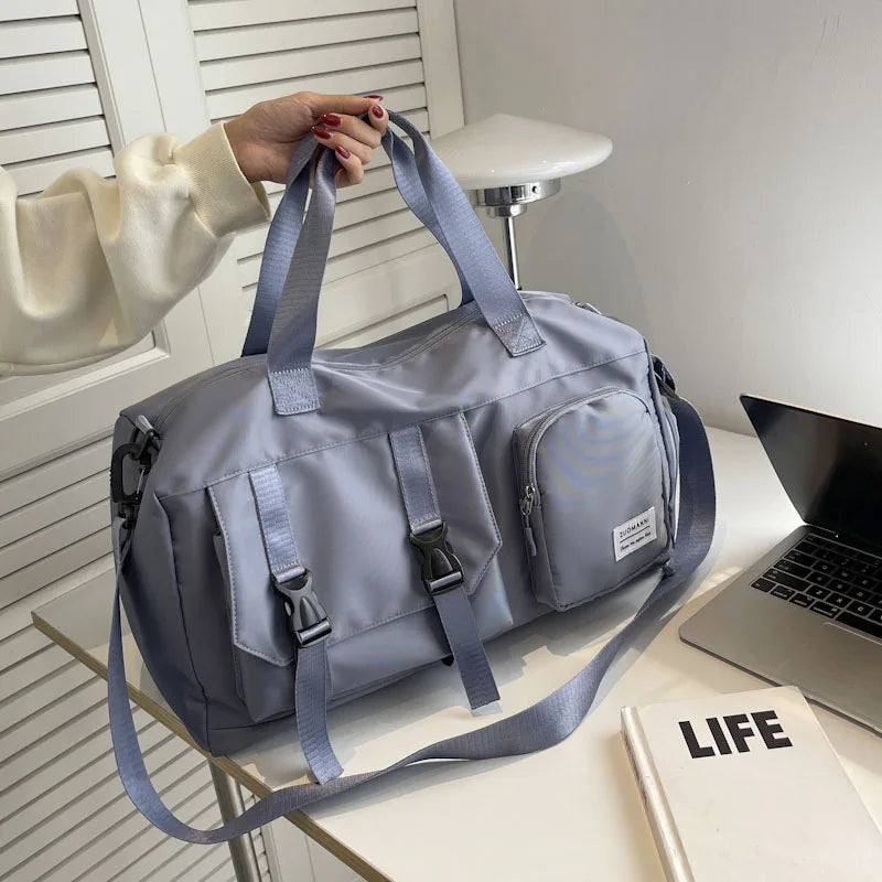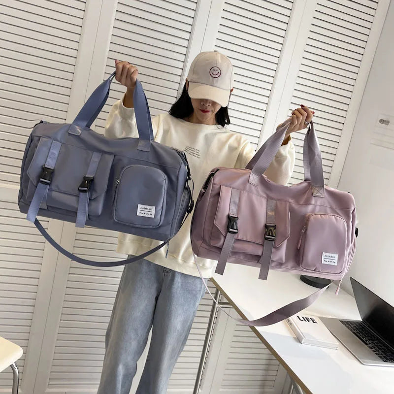 This versatile travel bag features a foldable design, dry and wet separation pockets, and extended overnight handbag functionality. Perfect for fitness enthusiasts, it also includes waterproof storage compartments.