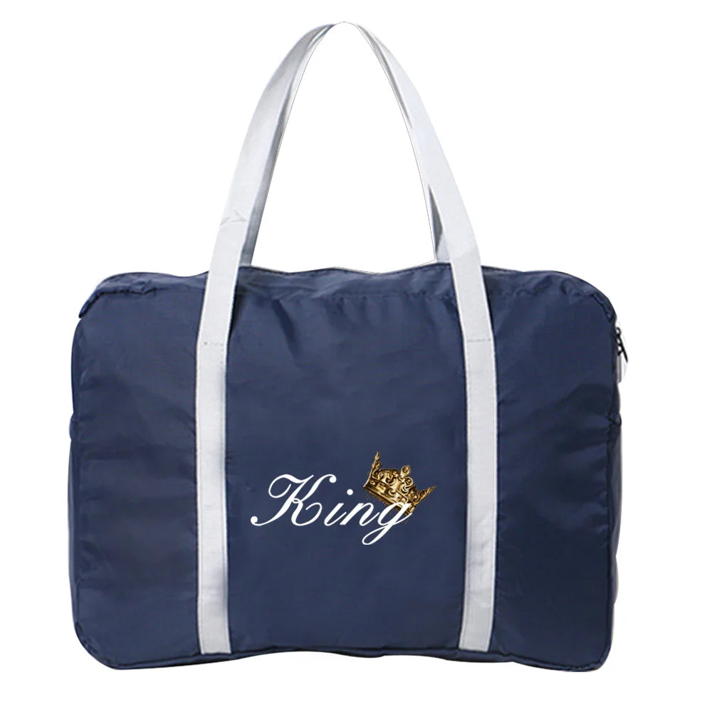 This spacious travel bag is perfect for all your essentials on the go. Made from high-quality nylon material, it is water-proof and durable. Featuring a stylish King Series print, this bag is foldable for easy storage.