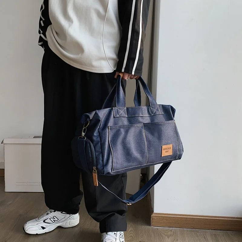 Large Capacity Retro Denim Travel Handbag Duffle Bag Unisex Travel Crossbody Bag