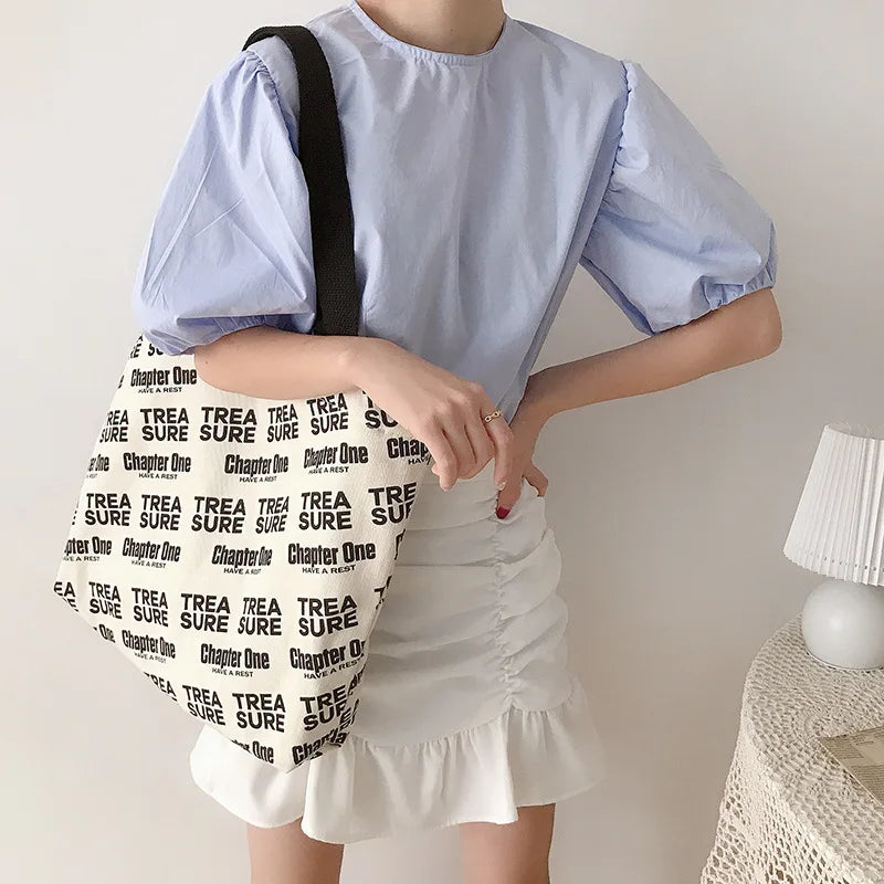 Large Capacity Shoulder Bag INS Letters Canvas Shopping