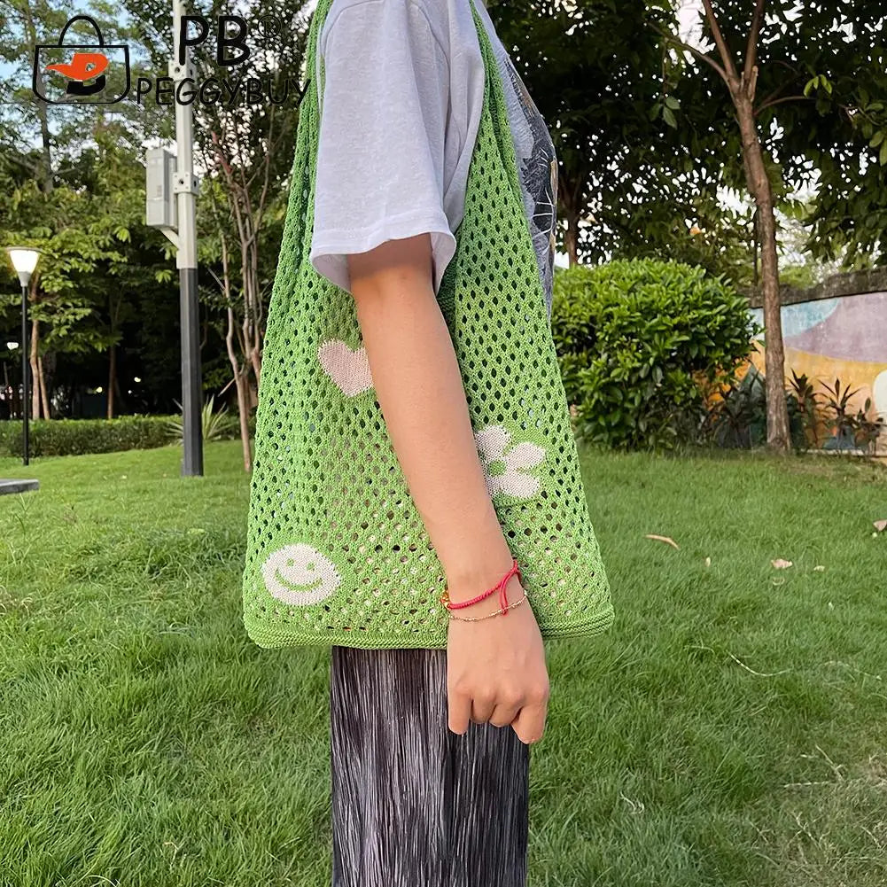 Stay stylish and organized with this knitted underarm bag perfect for summer beach travels. Featuring a hollow flower design, it offers a spacious interior for all your essentials.