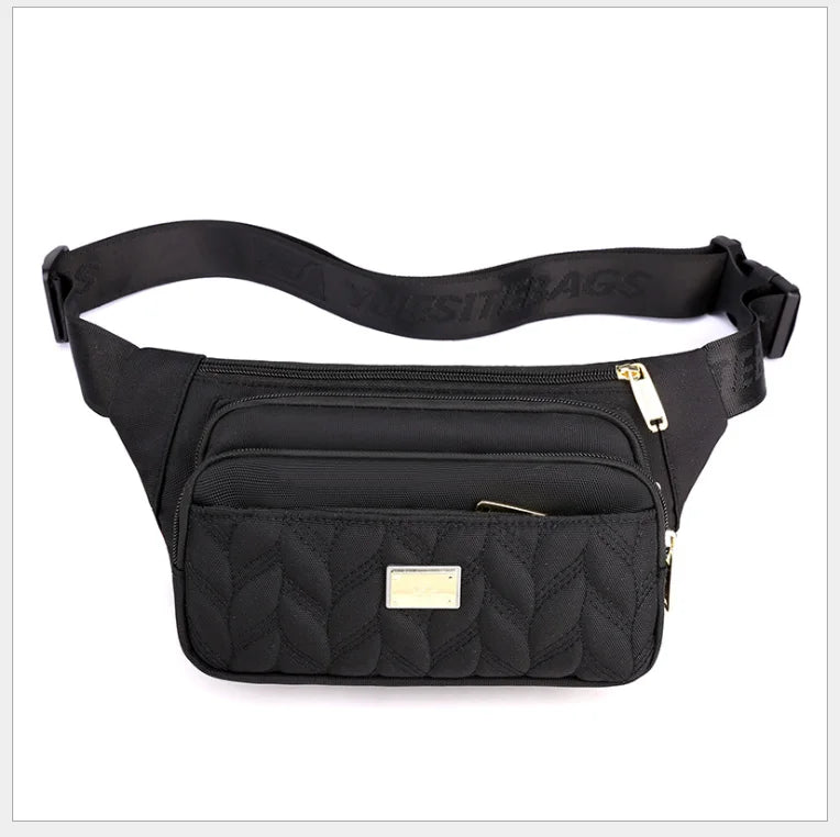 This versatile waist bag is perfect for active women who want to carry essentials while on the go. Made of durable nylon, it offers ample storage space in a stylish design.