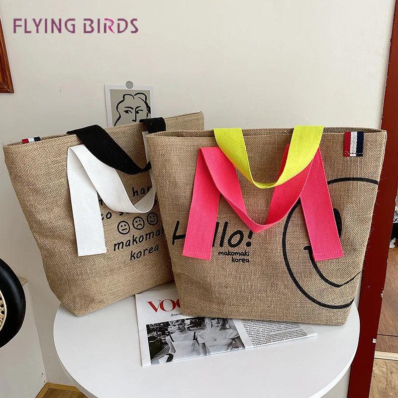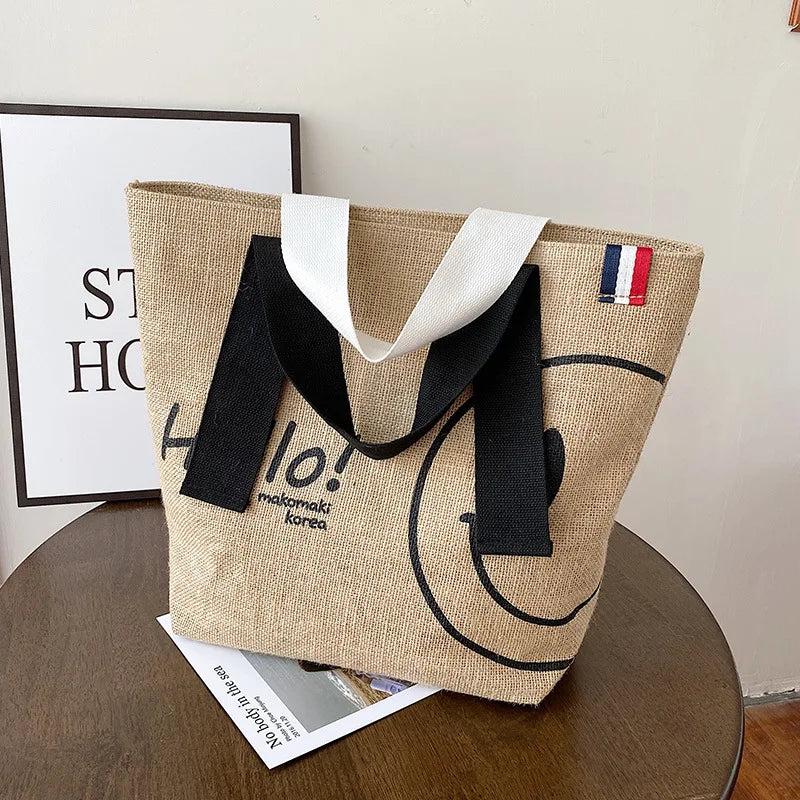 Large Capacity Tote Bag Handbags - Cotton/Linen Printed Casual Shopper