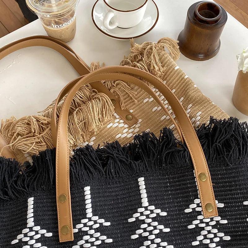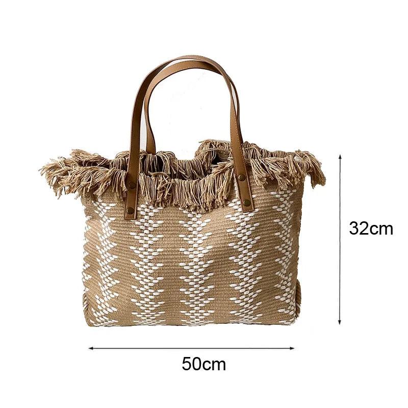 This spacious shoulder bag is perfect for beach outings, shopping, or any casual day out. It features a woven knitting design that adds a touch of style to your look.