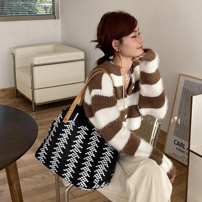 Large Capacity Woven Knitting Shoulder Bag Beach Handbag