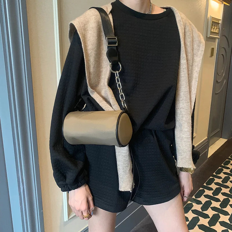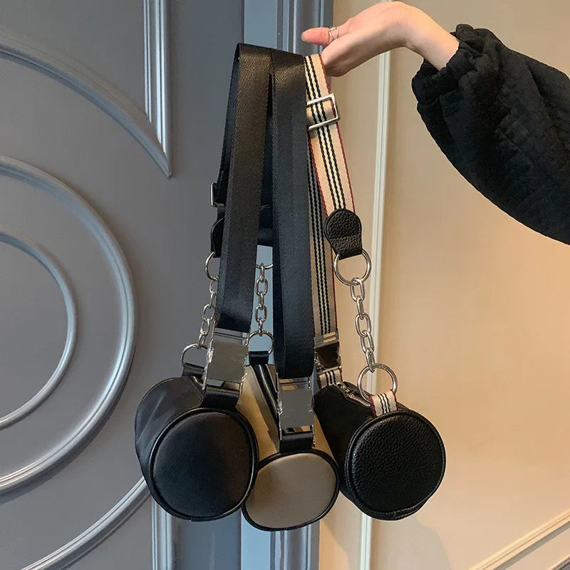 Large PU Leather Shoulder Bag Woman Casual Tote Nylon Solid Handbag Crossbody