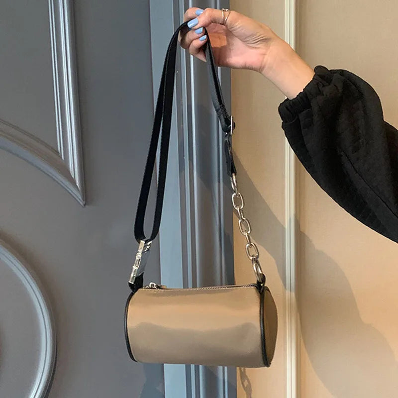 Stay stylish and organized with this large shoulder bag made of PU leather and nylon. Perfect for casual outings, this solid handbag features a versatile crossbody strap.