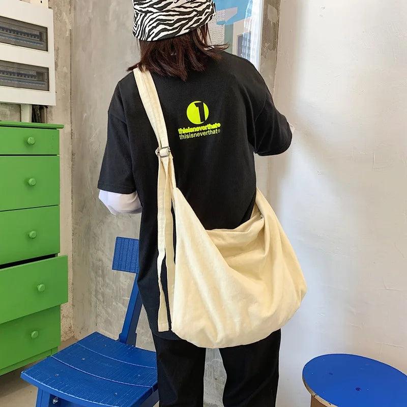 This canvas bag combines Japanese retro style with minimalist design. It's a versatile shoulder messenger handbag for your daily essentials.
