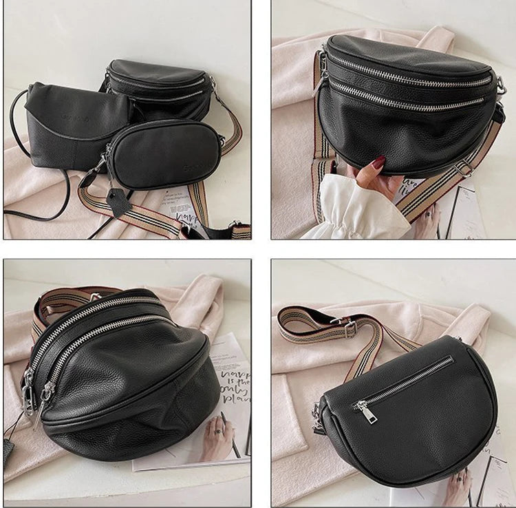 This multi-functional chest bag is made of durable cowhide leather, perfect for everyday use.