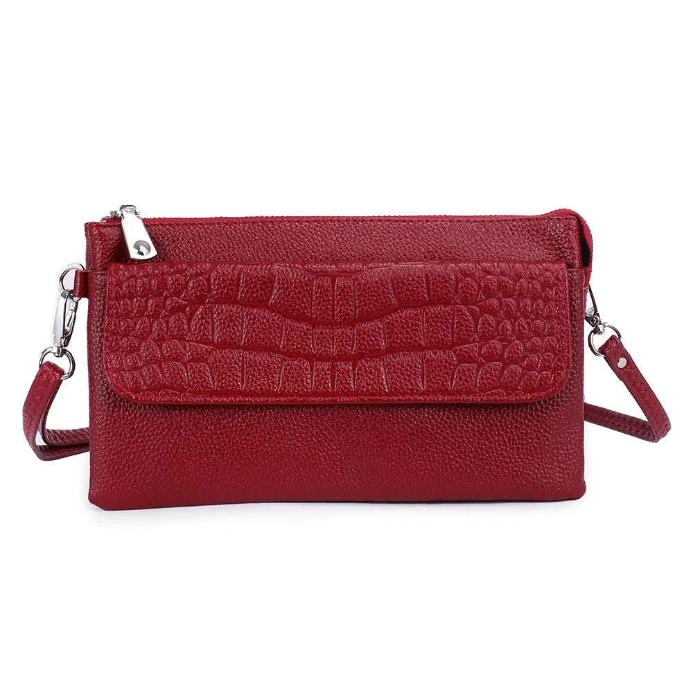 Leather Cross Body Bag for Women Solid Shoulder Messenger Clutch