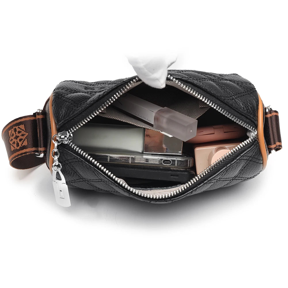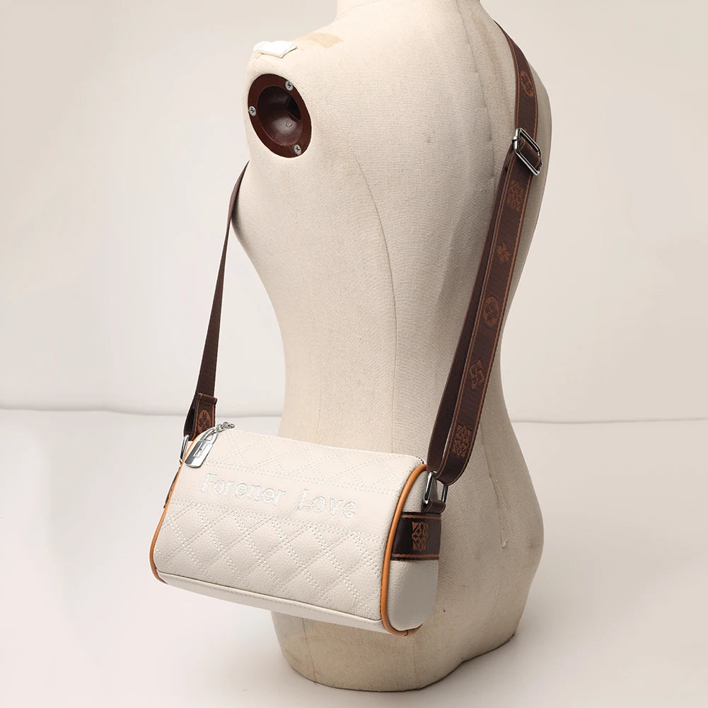 Add a touch of elegance to your outfit with this barrel-shaped leather crossbody bag. Perfect for casual evenings out, this shoulder bag features a stylish rhombus print design. Ideal for carrying your essentials in style.
