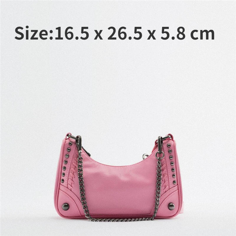 Leisure Hobo Chain Crossbody Bag Rivet Soft PU Leather Purses and Handbags