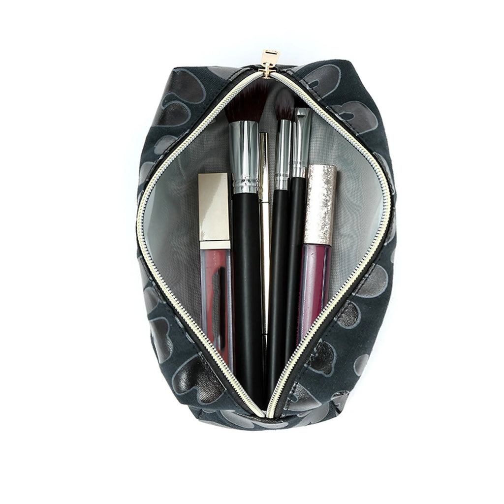 Stay stylish on-the-go with this glossy leopard print cosmetic bag. Perfect for storing your favorite cosmetics and essentials.