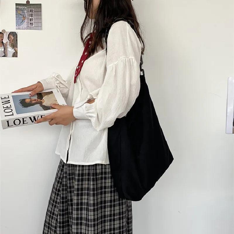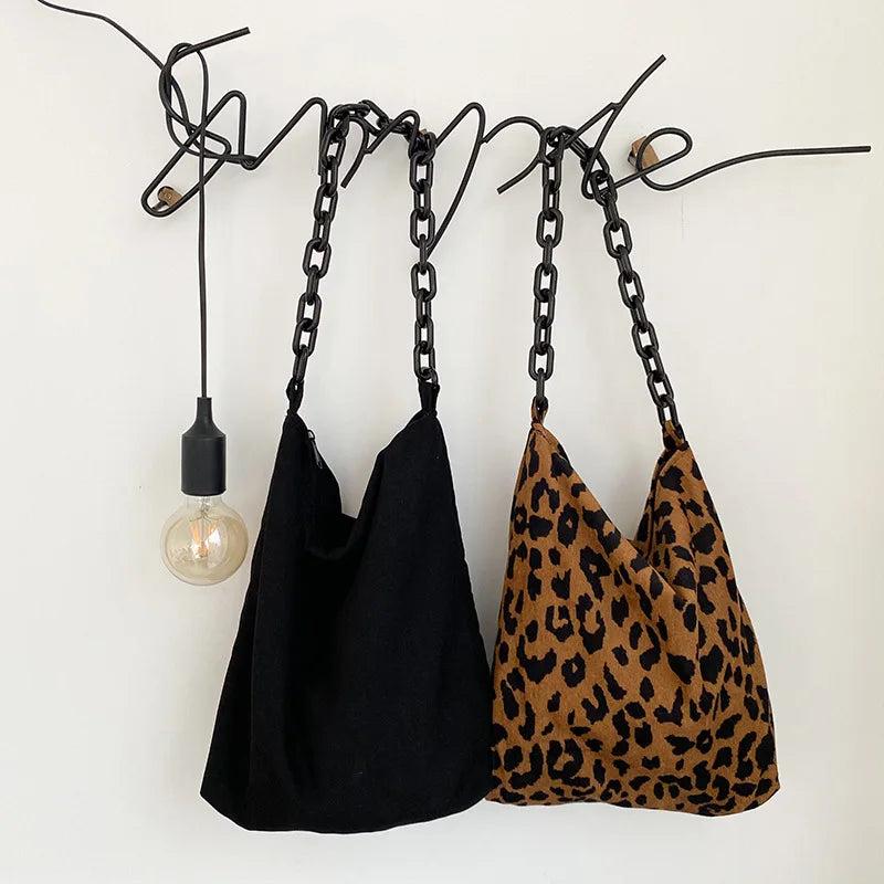 Leopard/Black Shoulder Bag Wild Literary Corduroy Handbag