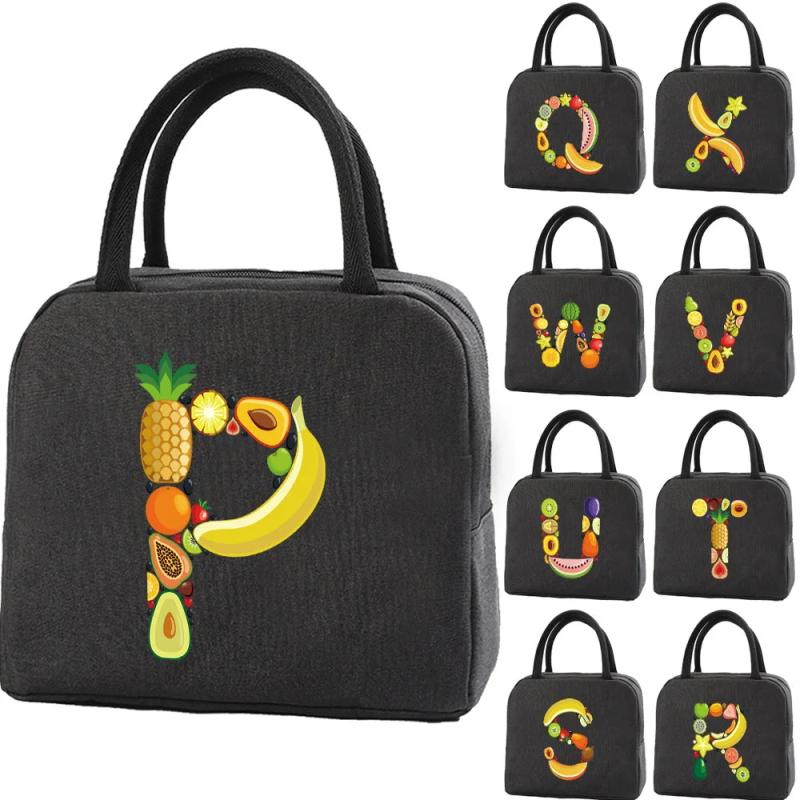 Letter Initials Series Lunch Bag - Insulated Thermal Handbag for Work and Picnic