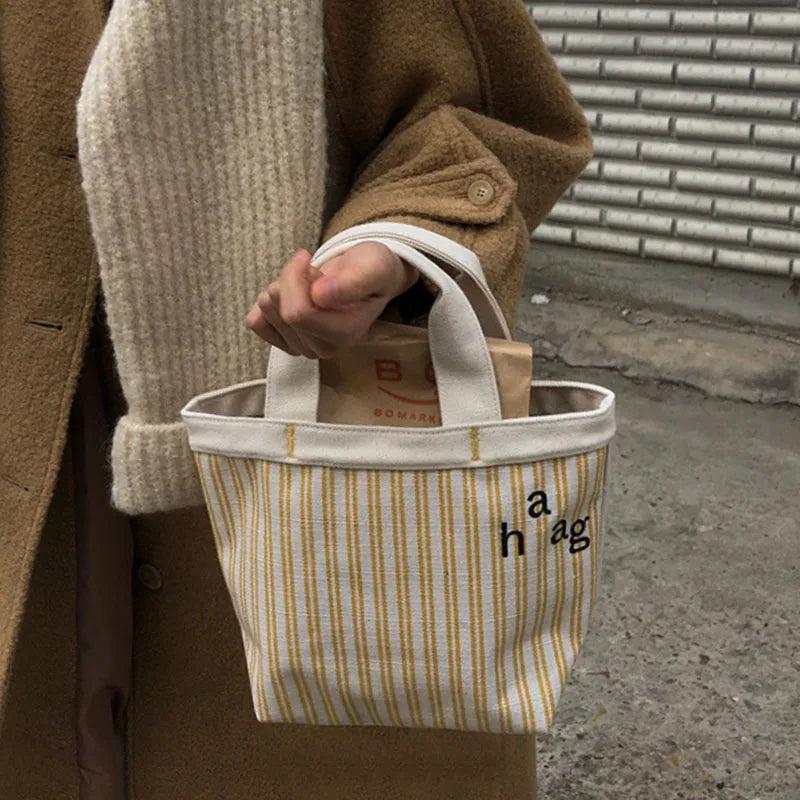 Description:This stylish handbag is perfect for picnics, lunches, or shopping with its large capacity and durable canvas material.Features: Striped canvas design adds a touch of sophistication Spacious interior for carrying all your essentials Ideal for picnics, lunches, or shopping trips Durable construction ensures longevity Fashionable and practical accessory for everyday...