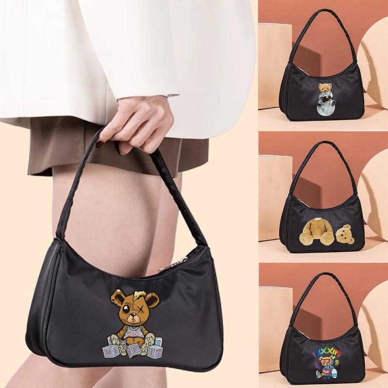 Little Bear Print Mini Shoulder Bag Woman Handbag Underarm Tote Clutch Pouch