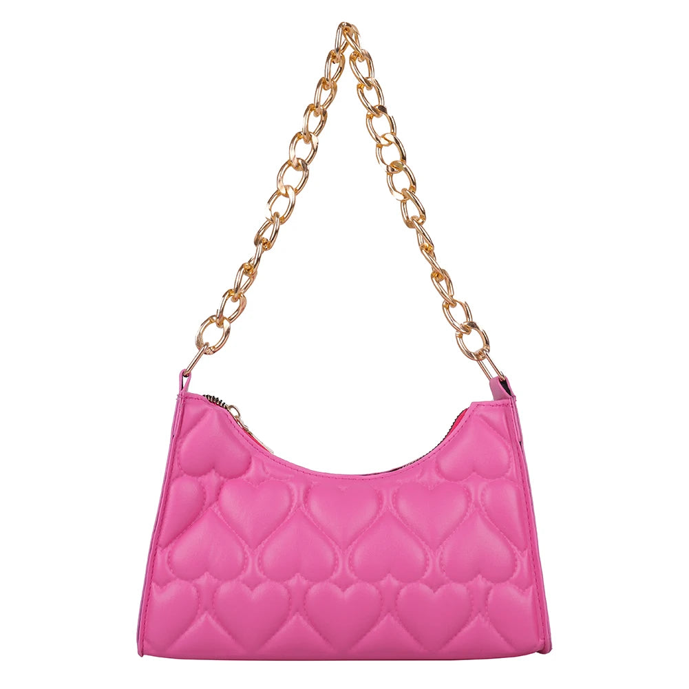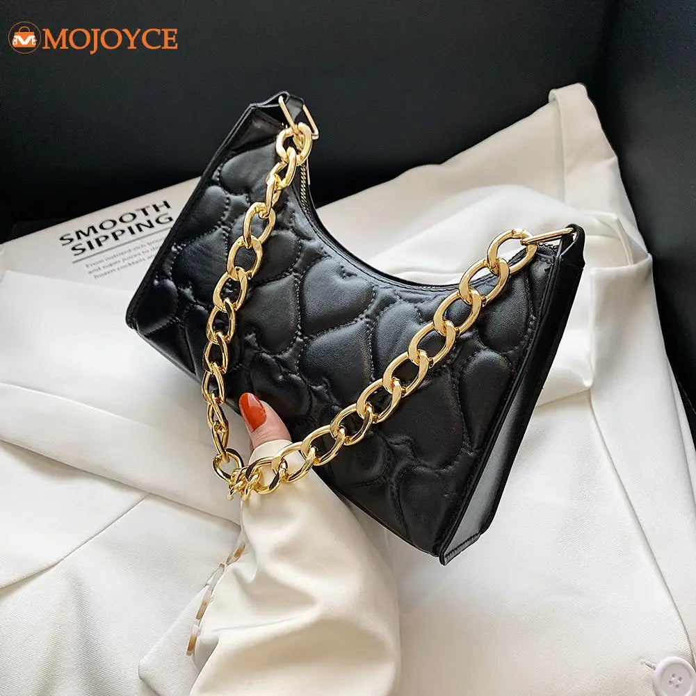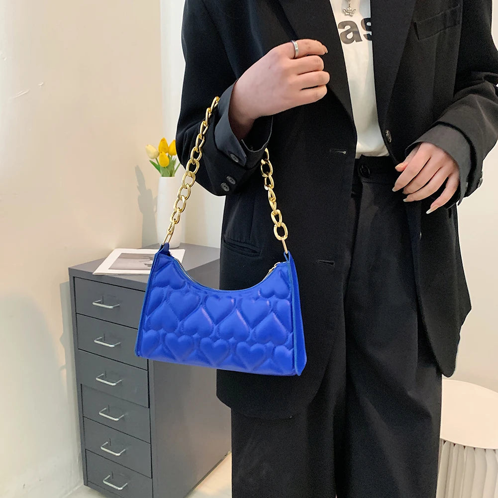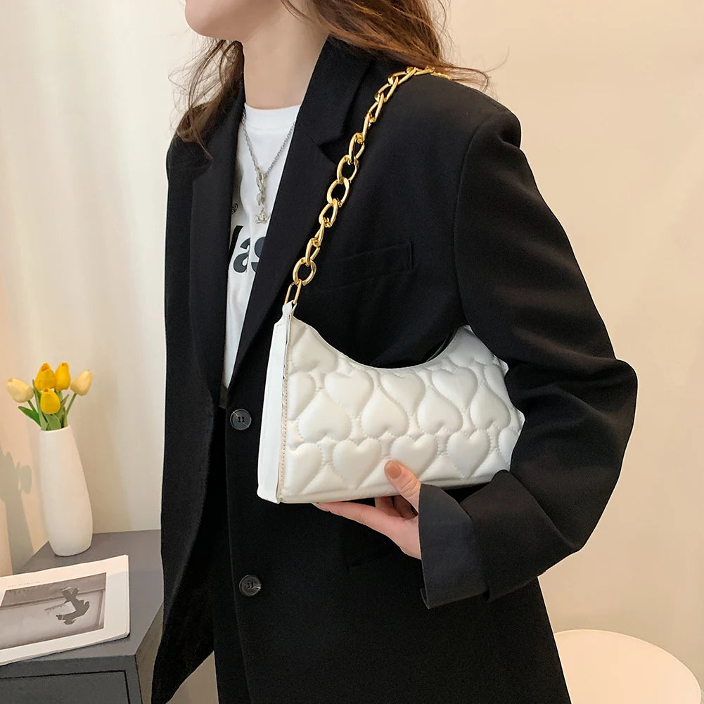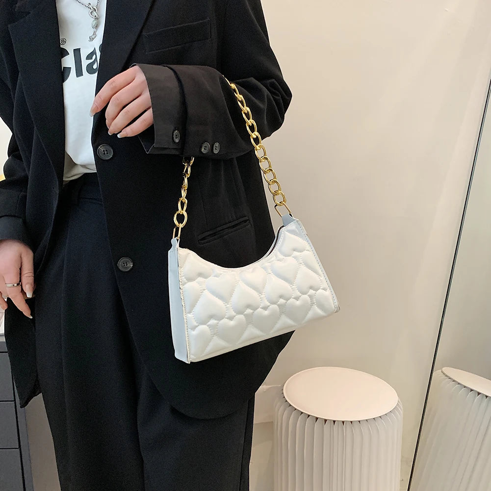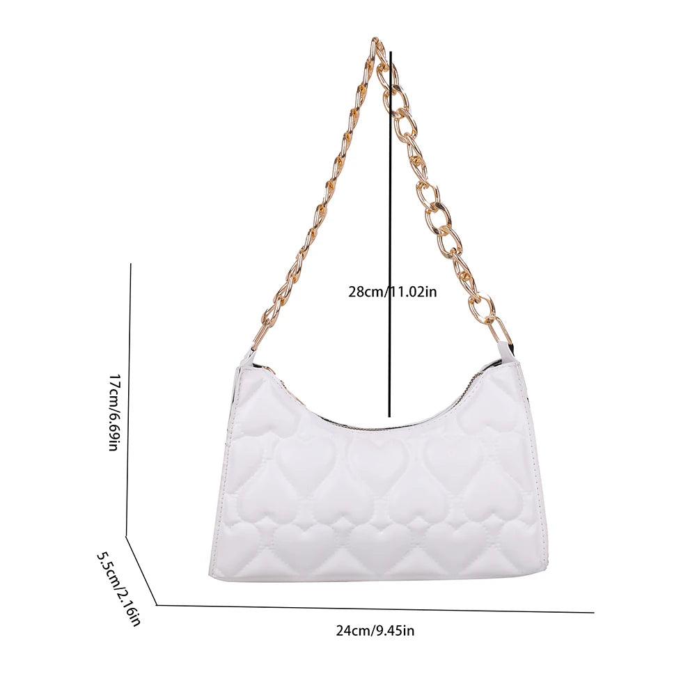 This stylish handbag features a love heart embossed design, made of high-quality PU leather. It's perfect for everyday use, shopping, or a casual outing. The chain shoulder strap adds an elegant touch to your look.