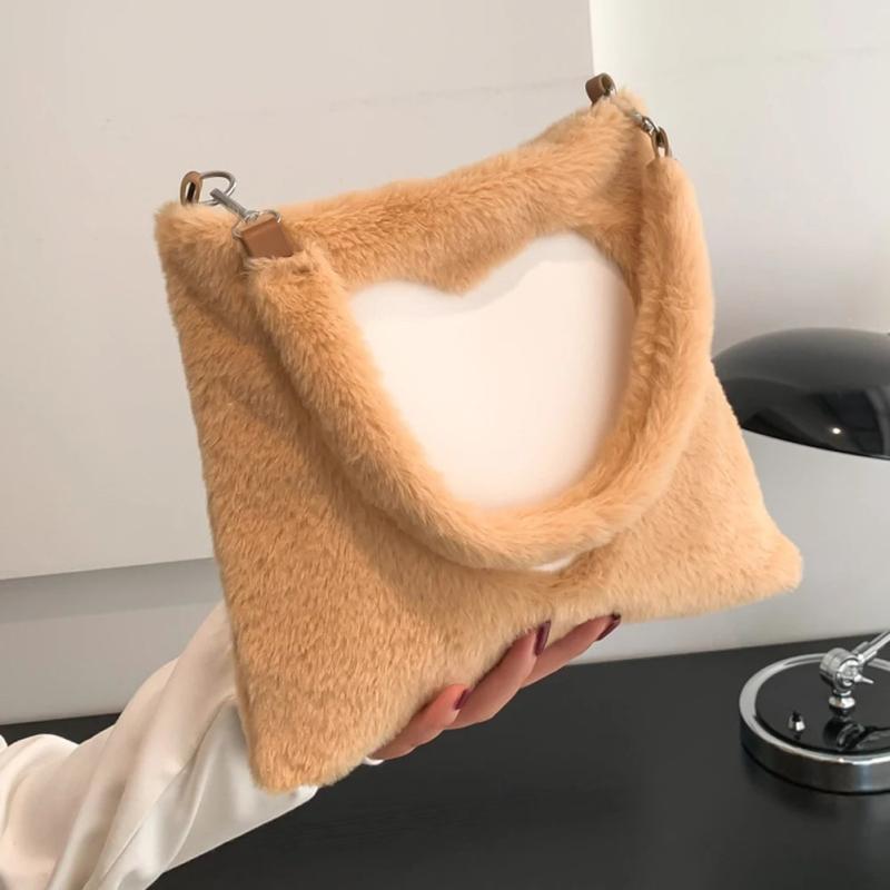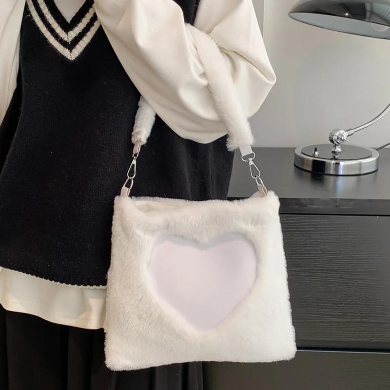 Stay stylish with this plush top-handle bag featuring a cute love heart pattern. It offers large capacity and a soft, portable design perfect for autumn and winter adventures.