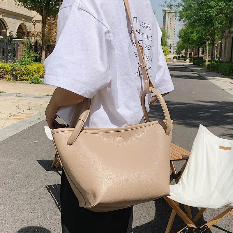 Matte Leather Bucket Bag Large Tote Women Shoulder Crossbody Handbag