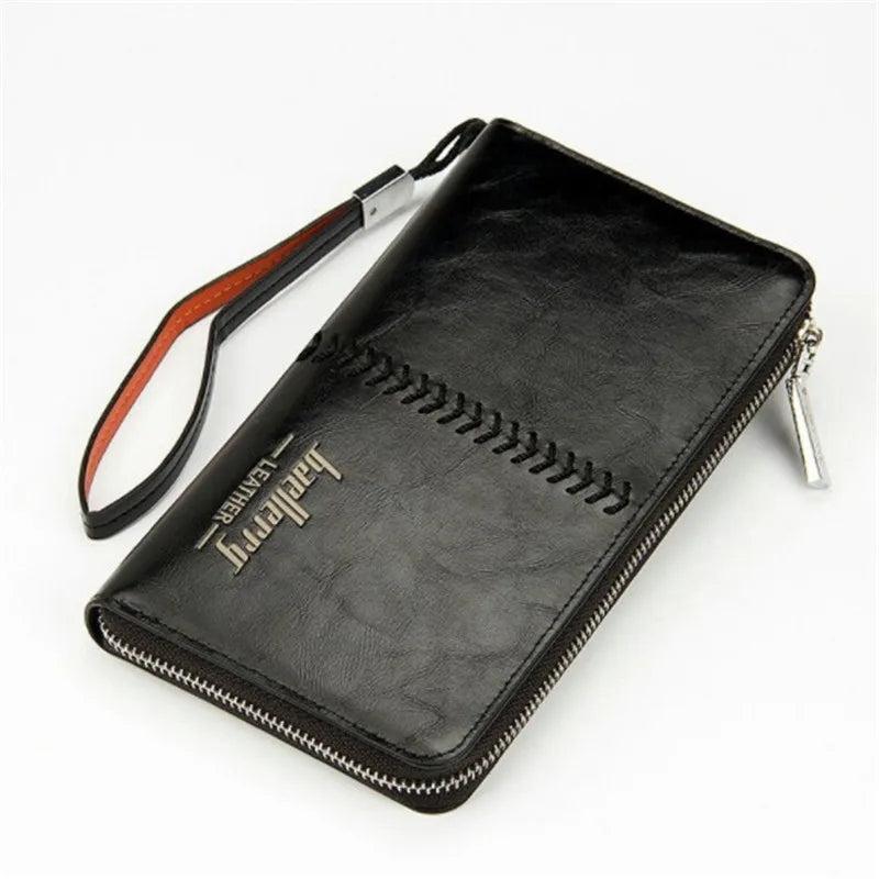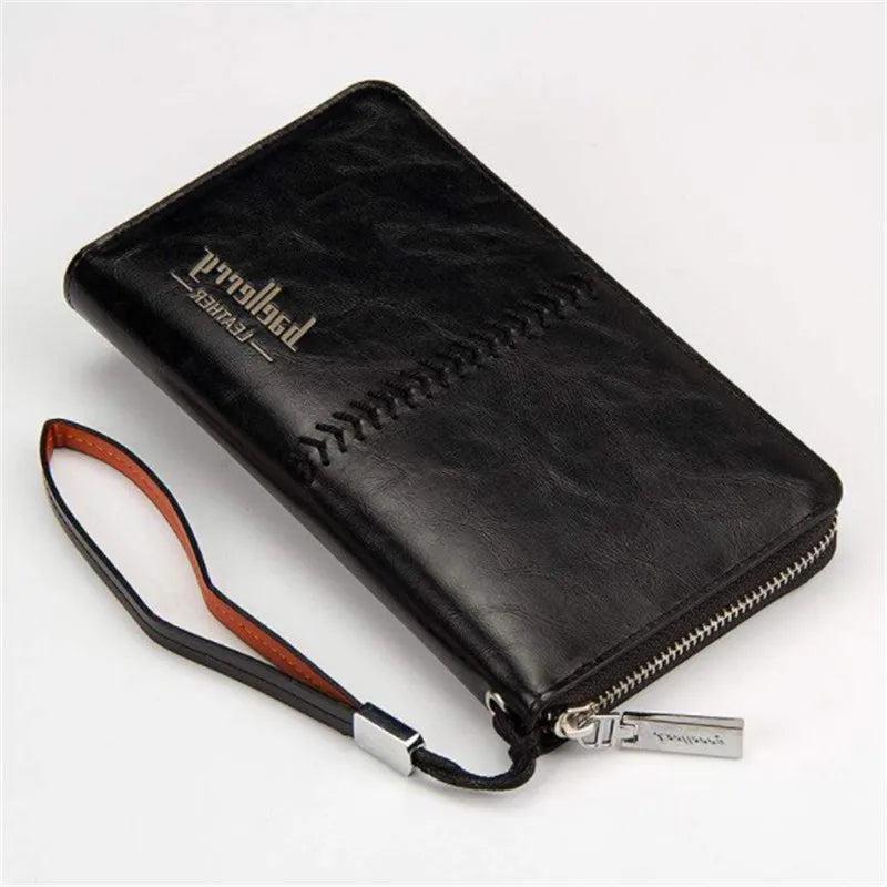 Men's Long Zipper Leather Clutch Bag Multi-function Wallet