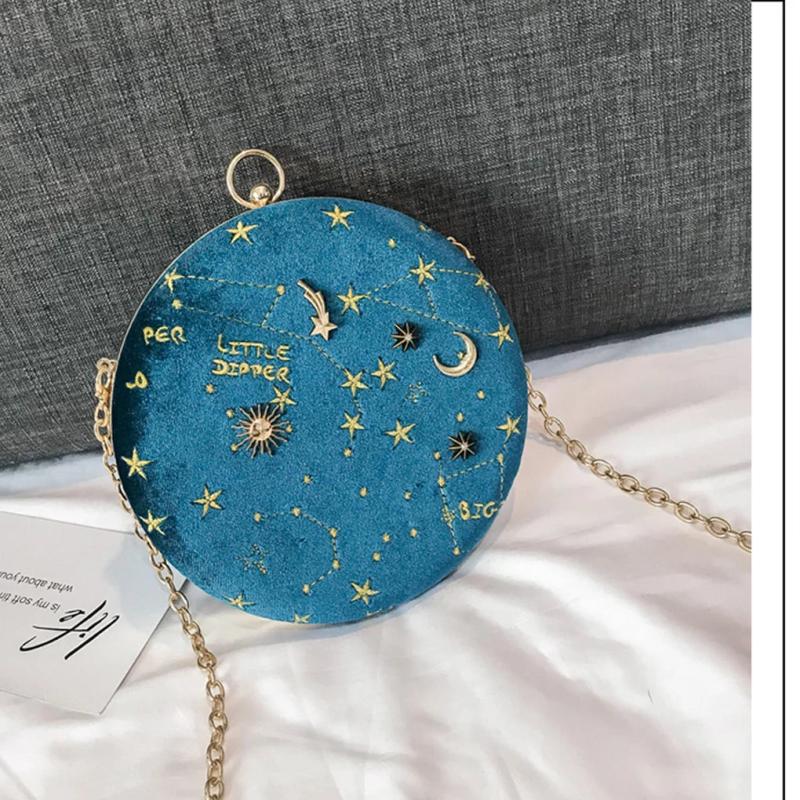 Messenger Bag Round Circular Cross Body Handbags Letters Velvet Stars Starry Sky