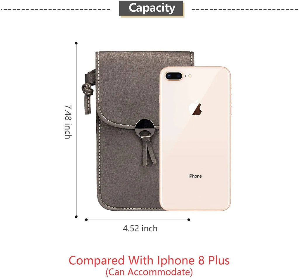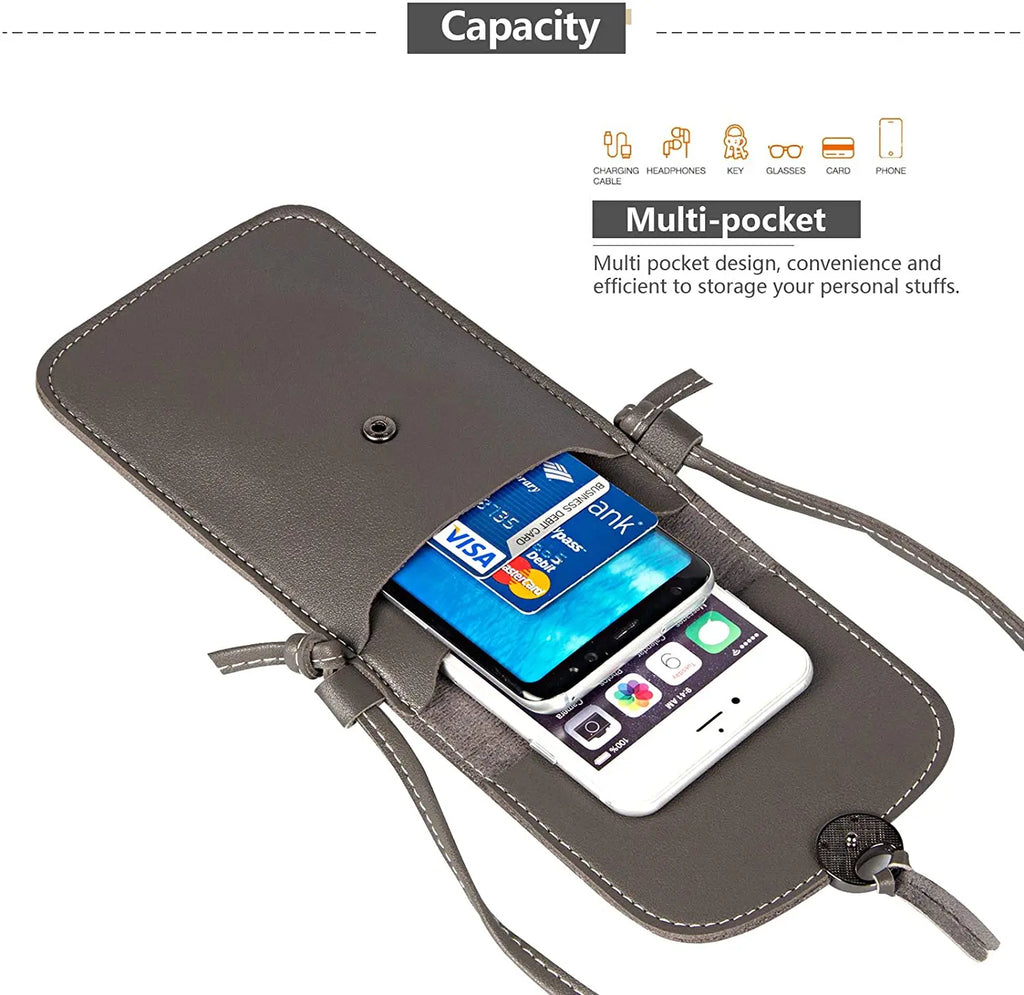 This stylish handbag features a metal chain design, perfect for casual outings. It has a square touch screen mobile phone pocket and a vertical crossbody chain shoulder strap.