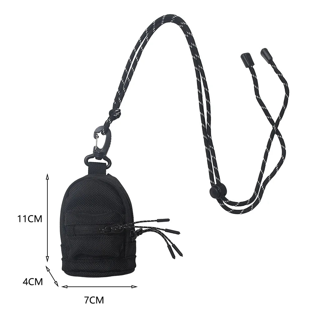 This mini backpack key organizer is a convenient nylon pendant package bag for travel or sports. It features a zipper chest bag for easy access.