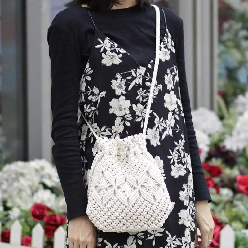 This mini crossbody bucket bag is perfect for a vacation or leisure day at the beach. It features a drawstring closure and is made of high-quality straw material.