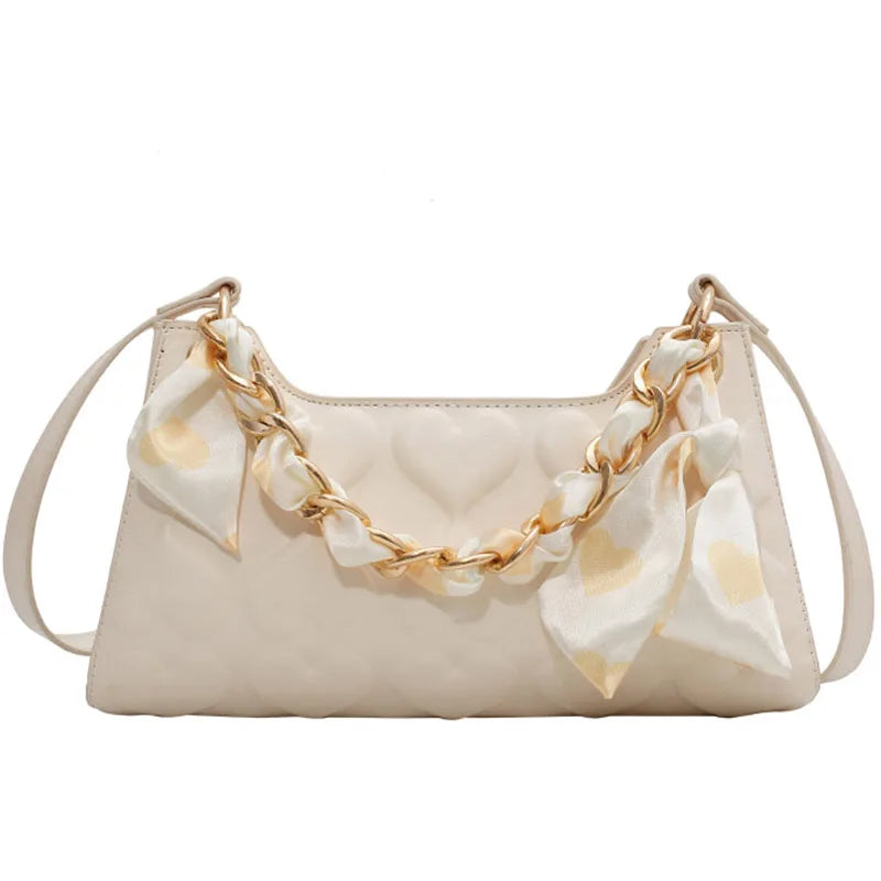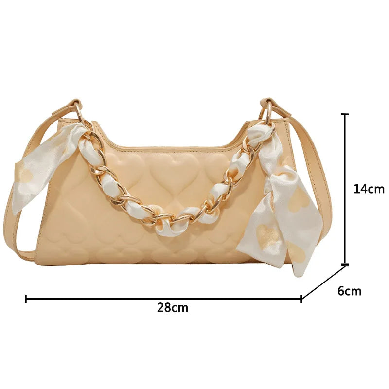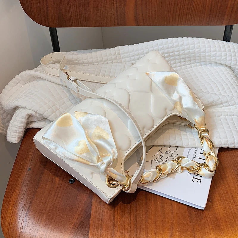 Elegant mini crossbody shoulder bag made of high-quality PU leather featuring a silk scarf for added style.