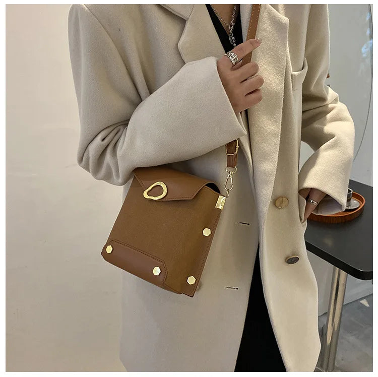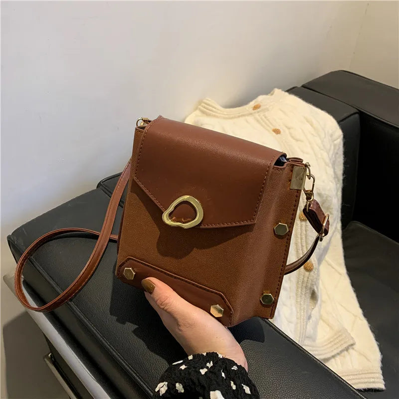 Stay stylish and organized with this mini PU shoulder bag. Made of durable PU leather and adorned with rivets, this bag is perfect for carrying your essentials in a trendy way. Its waterproof design ensures your items stay dry in any weather.