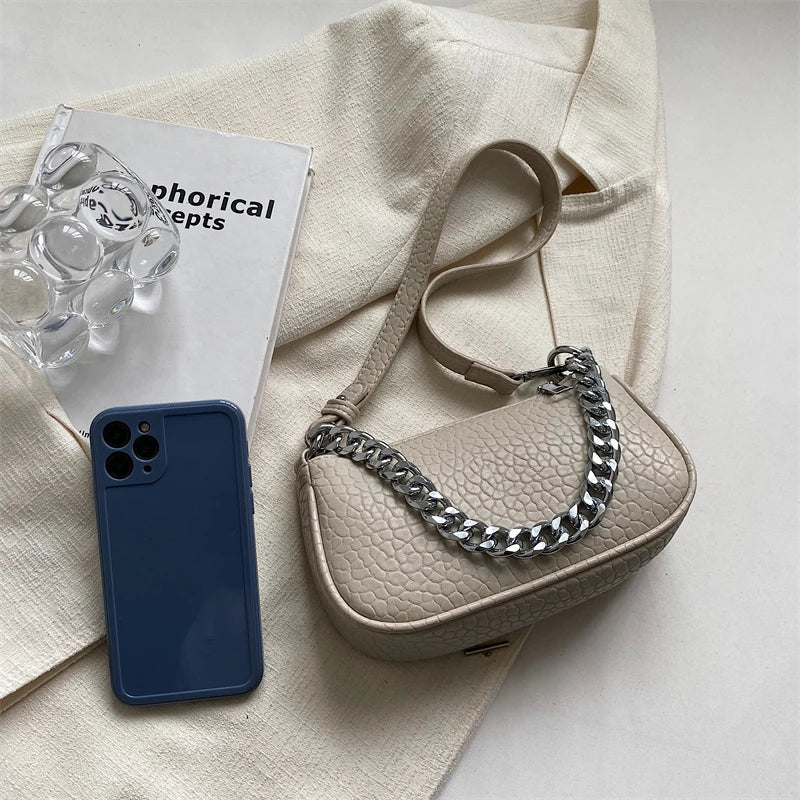 Stay stylish this autumn and winter with this petite shoulder bag. Made of high-quality leather, this small handbag features a chain strap and is perfect for carrying your mobile phone and essentials.