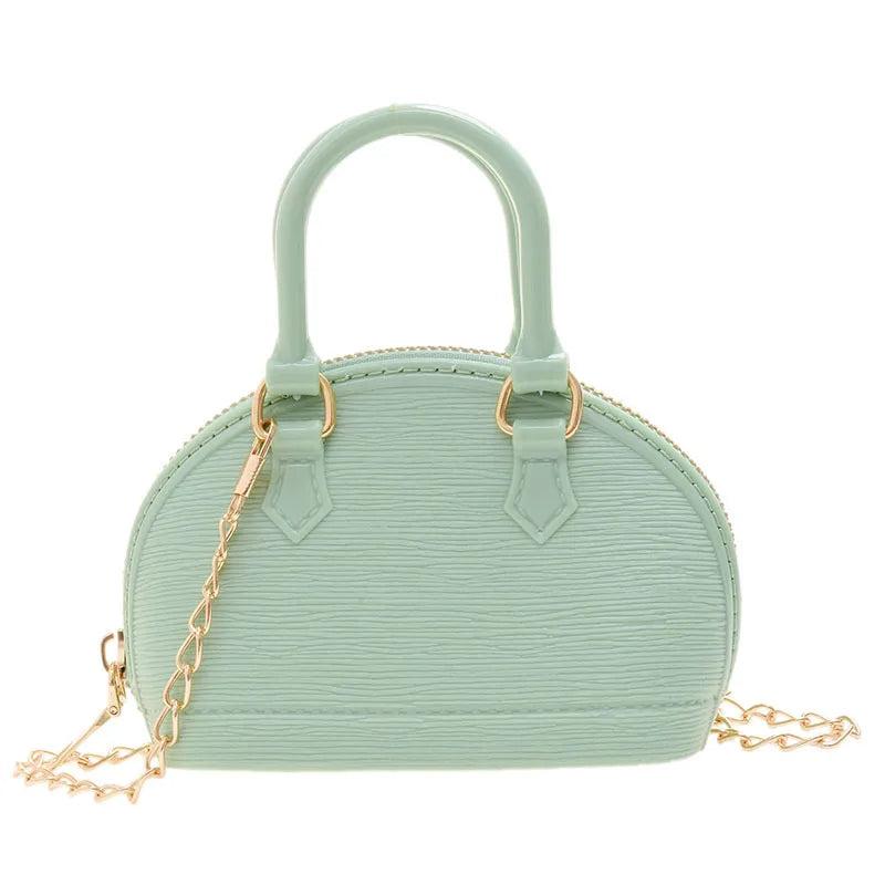 This mini top handbag is perfect for summer! It features a stylish shell design and can be worn as a crossbody bag or shoulder bag. The compact size makes it convenient for carrying your essentials.