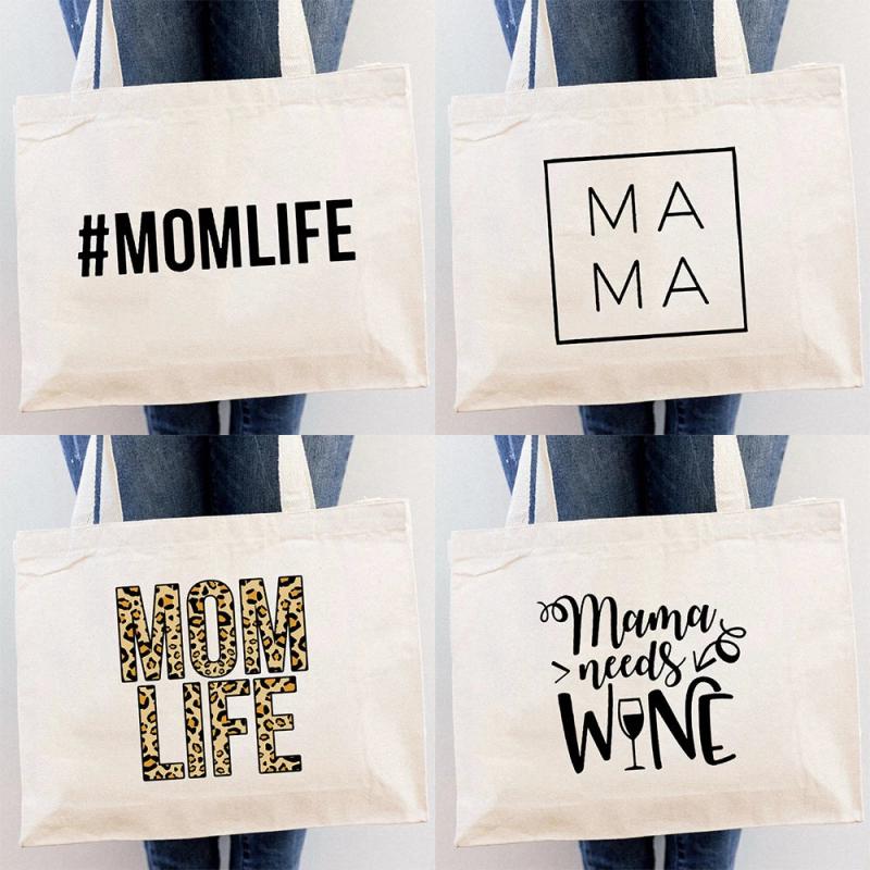 Mom Life Canvas Shopping Bags Tote Shoulder Bags Casual Totes Handbag