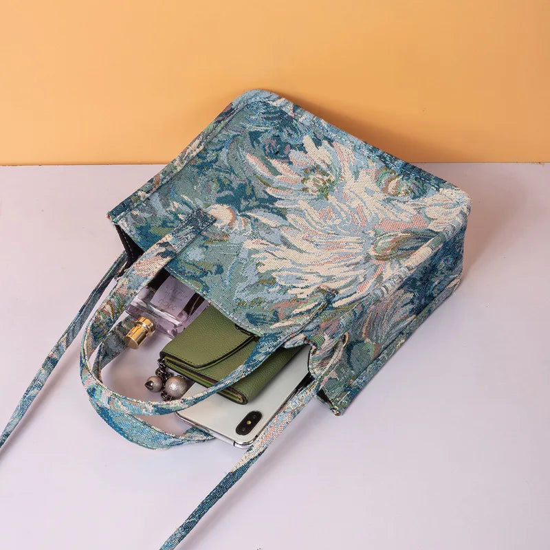 Stay stylish and environmentally friendly with this Monet oil painting shopping bag. It's foldable, lightweight, and perfect for all your grocery needs.