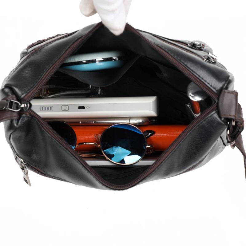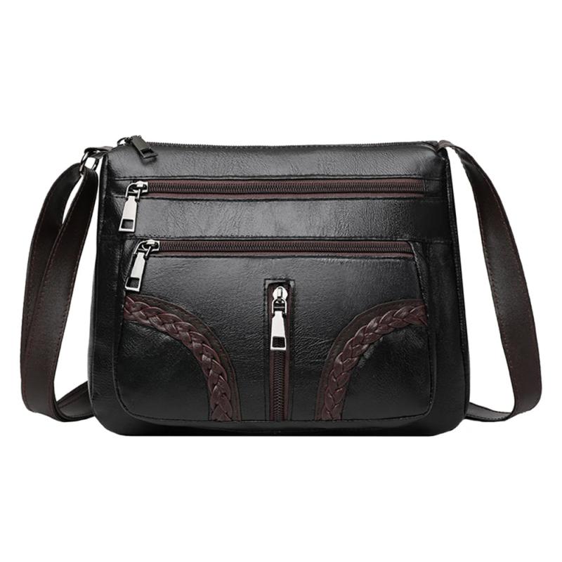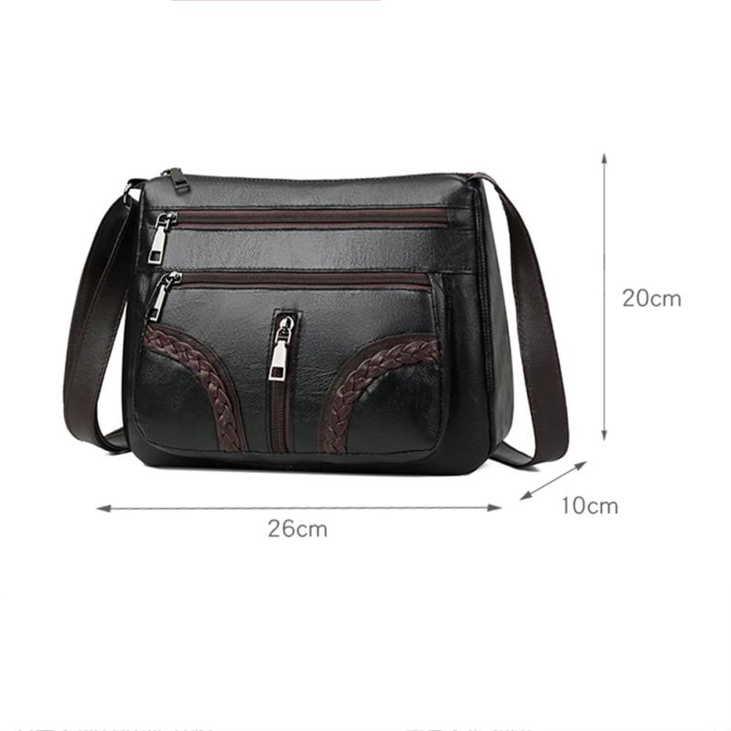 Mother Braided PU Leather Shoulder Messenger Bag Multi-Pocket Handbag