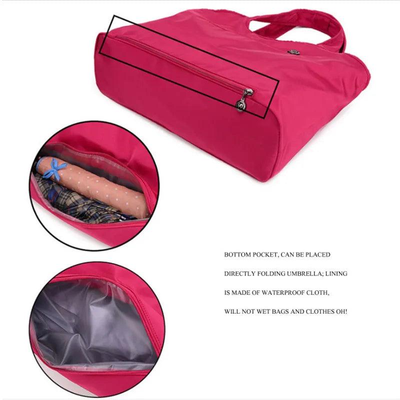 This light and durable nylon cloth handbag is perfect for mothers on the go. It features multiple pockets for easy organization and a stylish design suitable for dance or leisure activities.