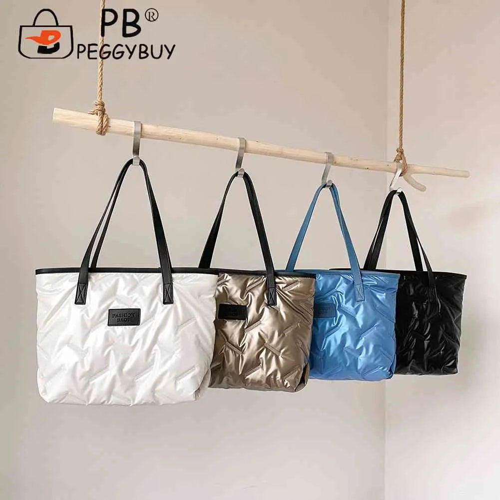 Stay cozy and stylish with this nylon cotton-padded handbag featuring a large capacity, warm design, and convenient zipper closure.