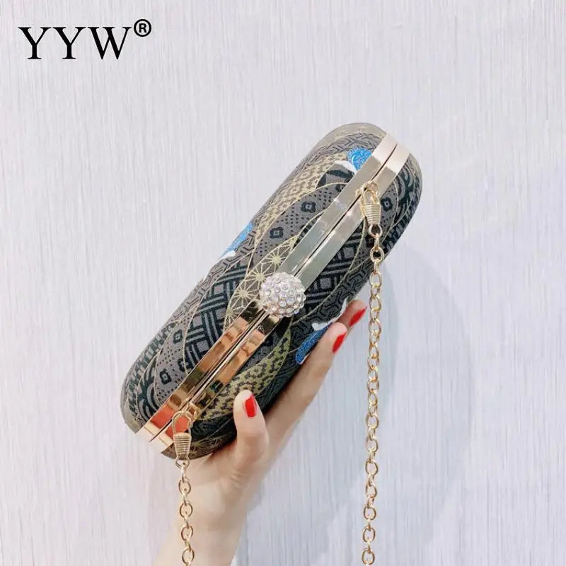 Stay stylish with this nylon clutch bag featuring an embroidered fish pattern. Perfect for evening parties or casual outings, this versatile handbag can be worn as a shoulder bag or crossbody with the detachable chain strap.
