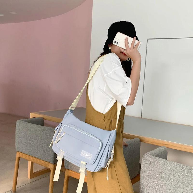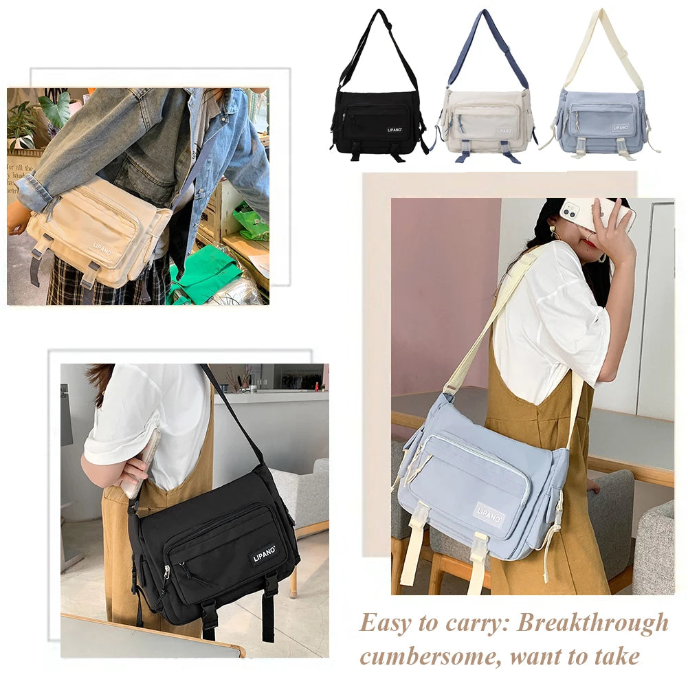 Nylon Messenger Bags Solid Crossbody Handbags Pockets Large Capacity