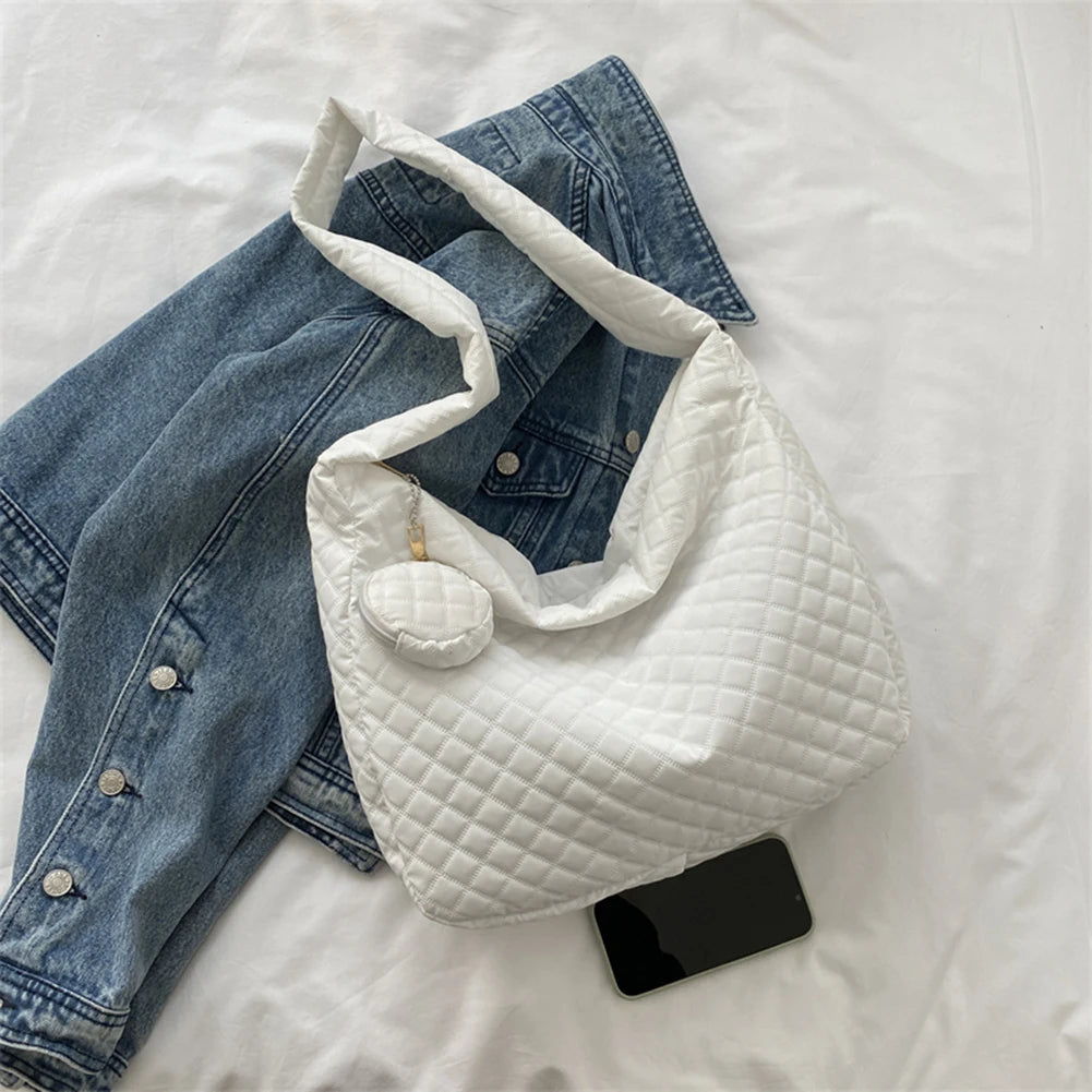 Nylon Quilted Messenger Bag Rhombic Large Capacity with Small Purse for Ladies