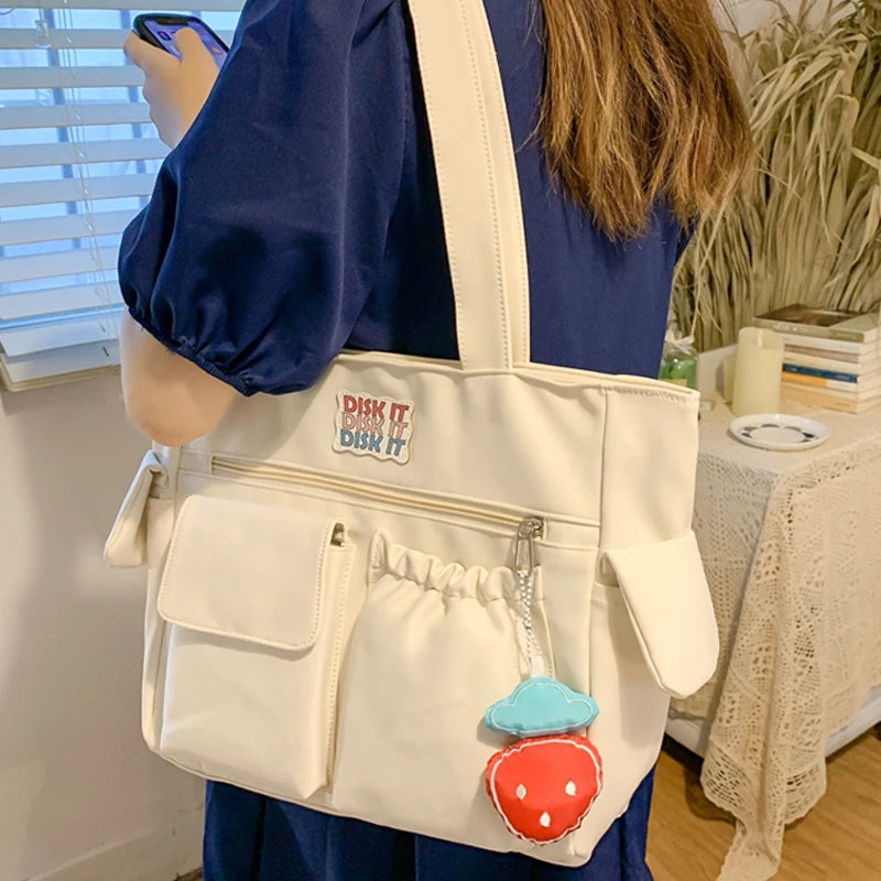 This Harajuku messenger bag is perfect for students with its spacious design. The nylon material is durable and trendy.