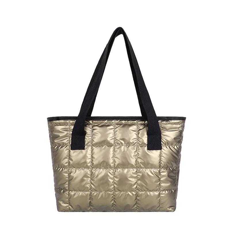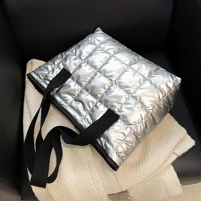 Stay cozy and stylish with this high capacity nylon shoulder bag, perfect for winter outings. Made with space cotton material, quilted design, and ideal for shopping or travel.