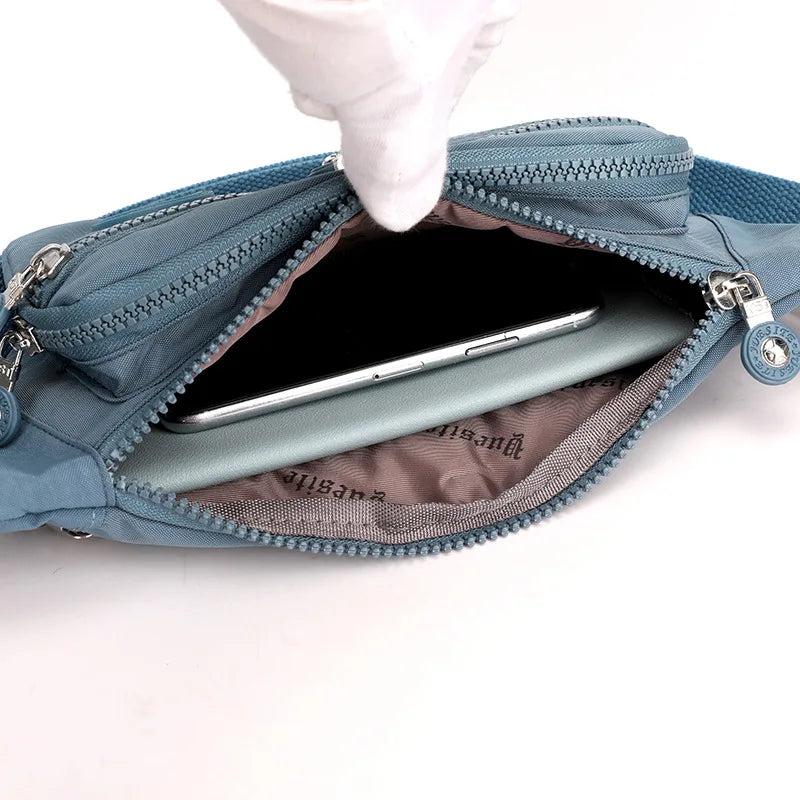 This versatile nylon waist pack can be worn as a crossbody or tote handbag, perfect for your phone and essentials during travels and sports activities.