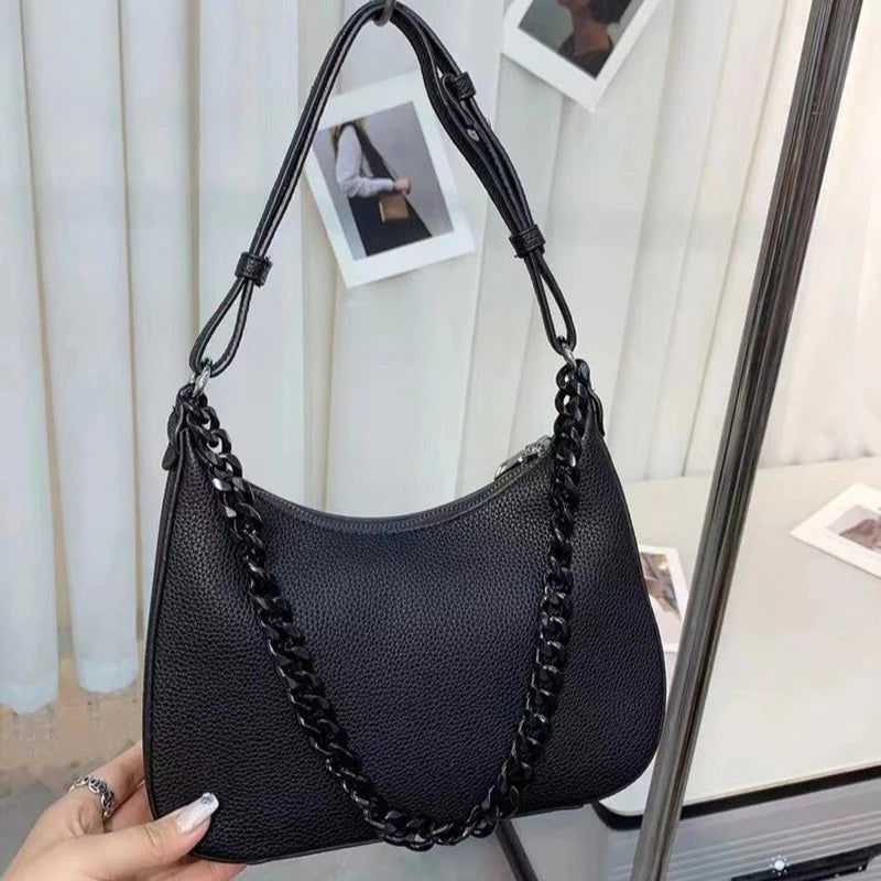 Elegant and stylish crossbody sling bag made of high-quality PU leather with chain handle. Ideal for ladies and women looking for a fashionable handbag.
