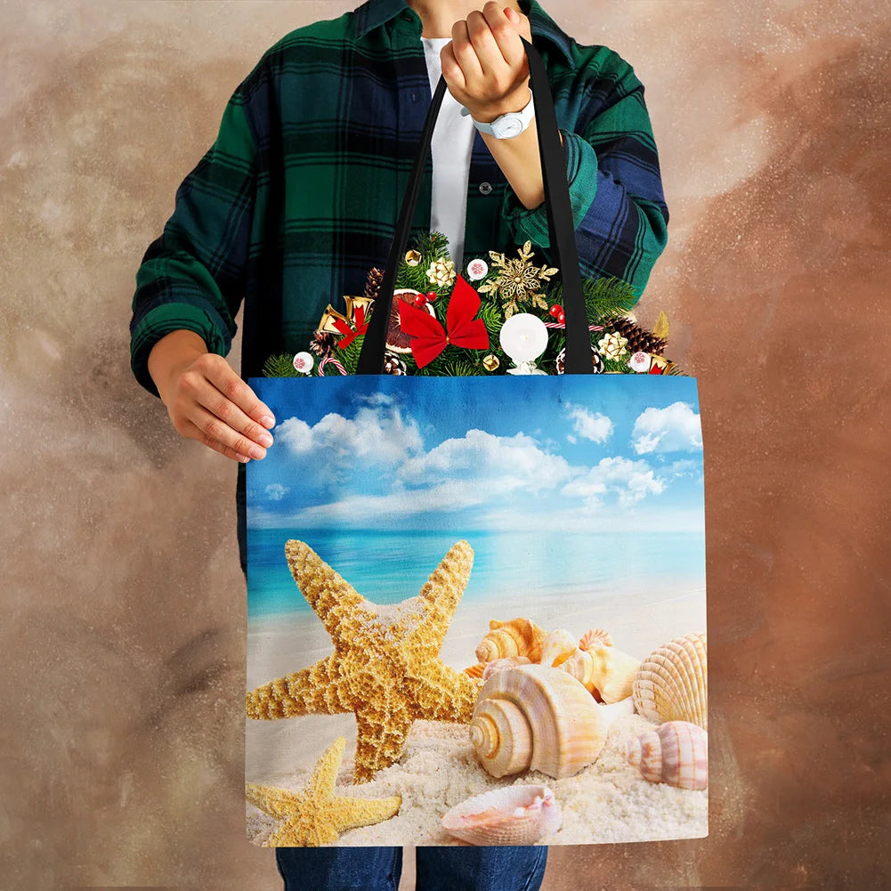 Ocean Starfish Beach Sand Prints Tote Bag Linen Fabric Handbag